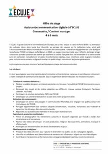 Offre de stage : Assistant(e) communication digitale à l’ECUJE – Community / Content manager